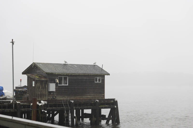 We are looking for a small New England coastal town — the kind of place that empties out after Labor Day and fills with a particular melancholy light. The town itself is a character: shuttered storefronts, a small library with creaking floors, a pier that extends into gray water.